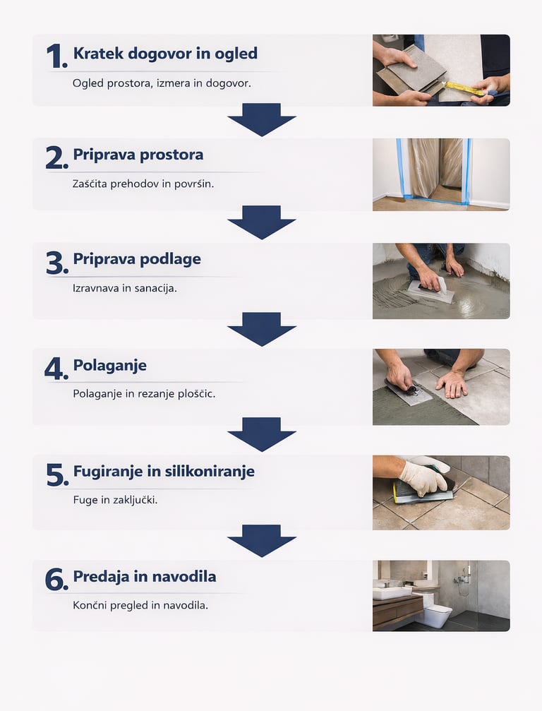 V praksi to pomeni, da se večina kakovosti zgodi še preden pride prva ploščica na steno. Priprava podlage, izravnava, pravilni materiali, in plan izvedbe.